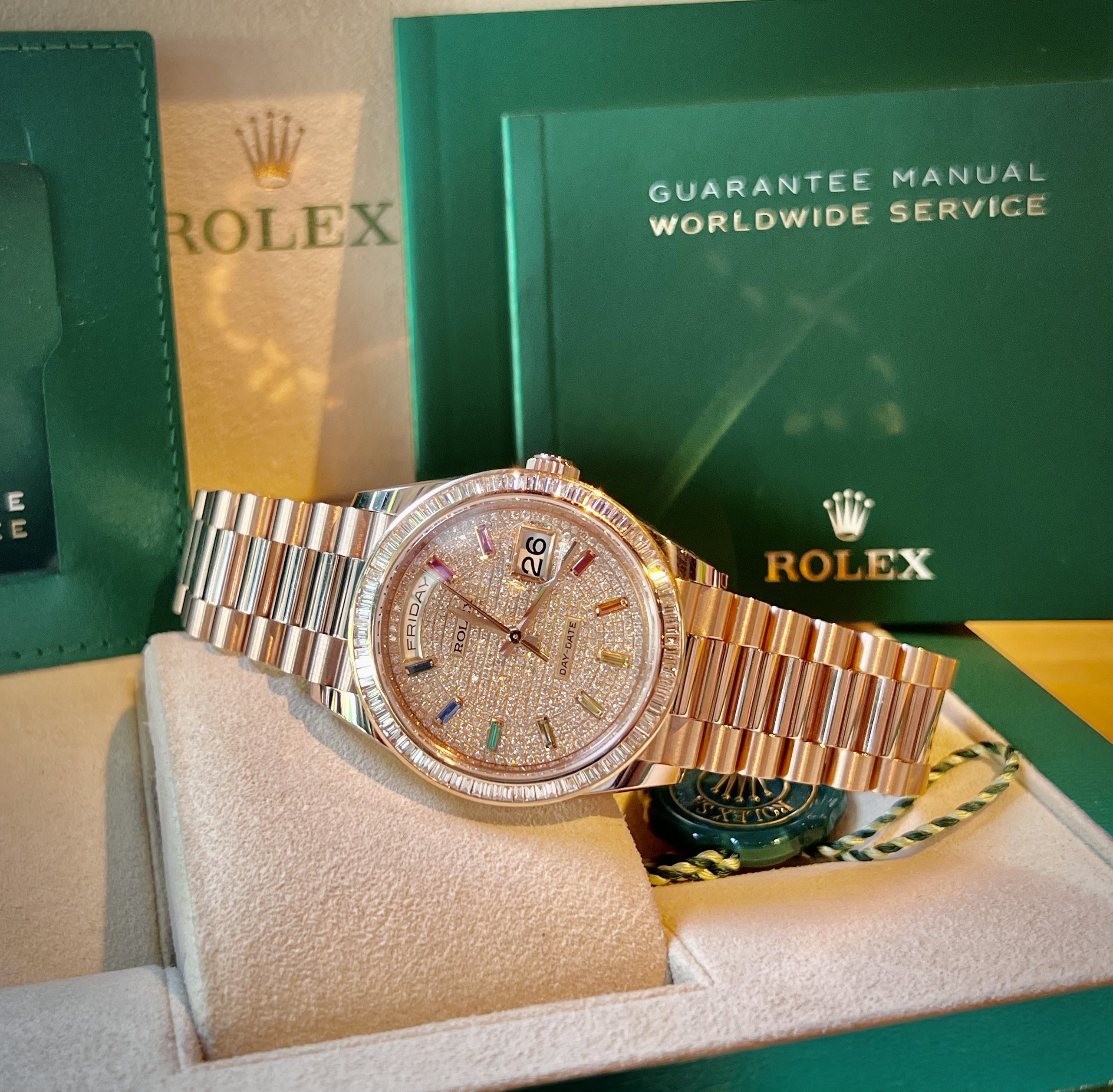 𝐑o𝐋ex 𝟏𝟐𝟖𝟐𝟑𝟓 𝐑𝐚𝐢𝐧𝐛𝐨𝐰 𝐃𝐢𝐚𝐦𝐨𝐧𝐝 𝐂𝐮𝐬𝐭𝐨𝐦 được đánh giá như mới, hoạt động hoàn hảo và đi kèm với đầy đủ hộp 2022. Điều này đảm bảo người dùng sẽ sở hữu một sản phẩm chất lượng, đẹp như mới và đáng tin cậy.