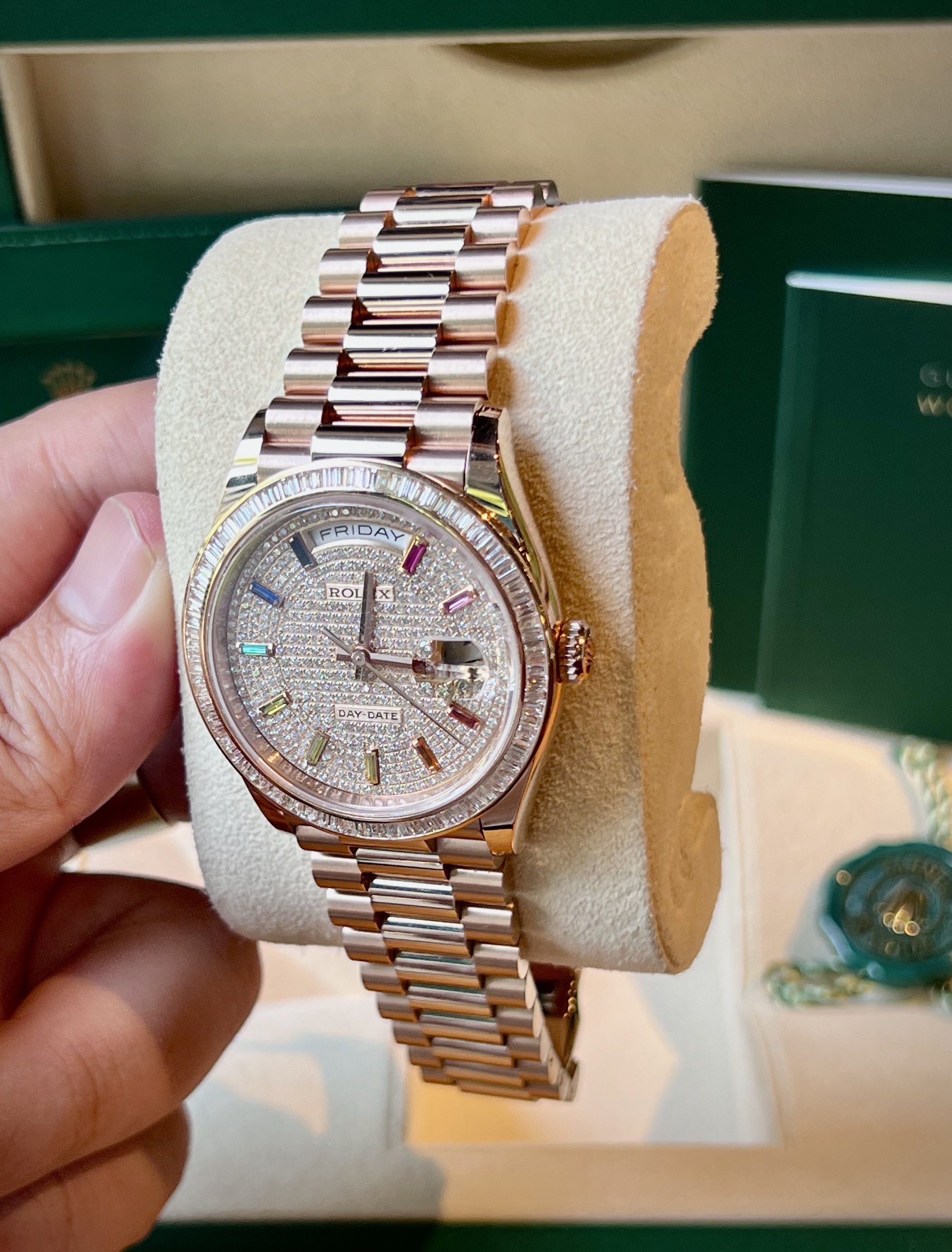 Đồng hồ 𝐑o𝐋ex 𝟏𝟐𝟖𝟐𝟑𝟓 𝐑𝐚𝐢𝐧𝐛𝐨𝐰 𝐃𝐢𝐚𝐦𝐨𝐧𝐝 𝐂𝐮𝐬𝐭𝐨𝐦 là sự kết hợp hoàn hảo giữa phong cách đẳng cấp và độ chính xác cao. Với kích thước 36mm, thiết kế tinh tế và chất lượng vượt trội, đây chắc chắn là một sản phẩm đáng để sở hữu và tự hào sử dụng.