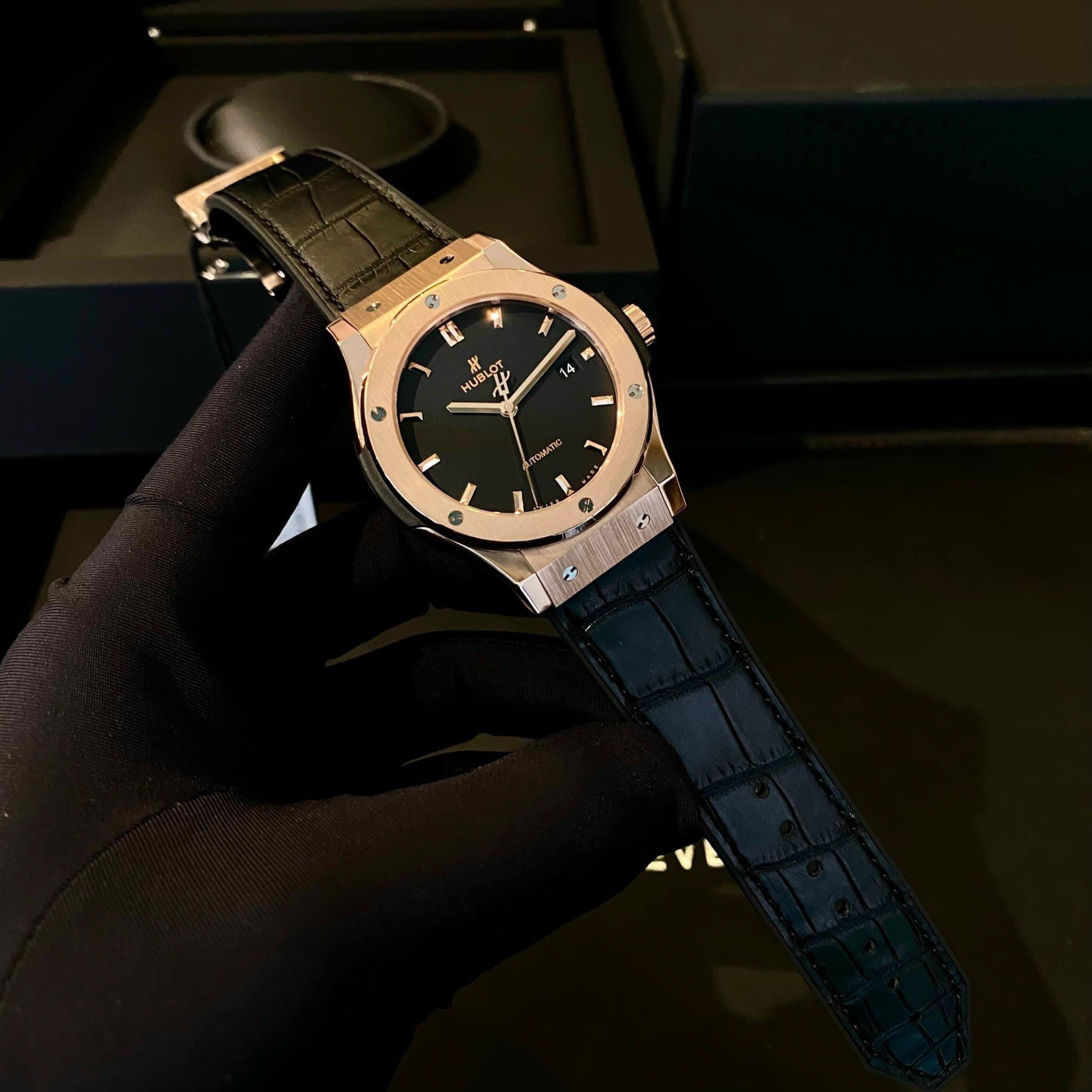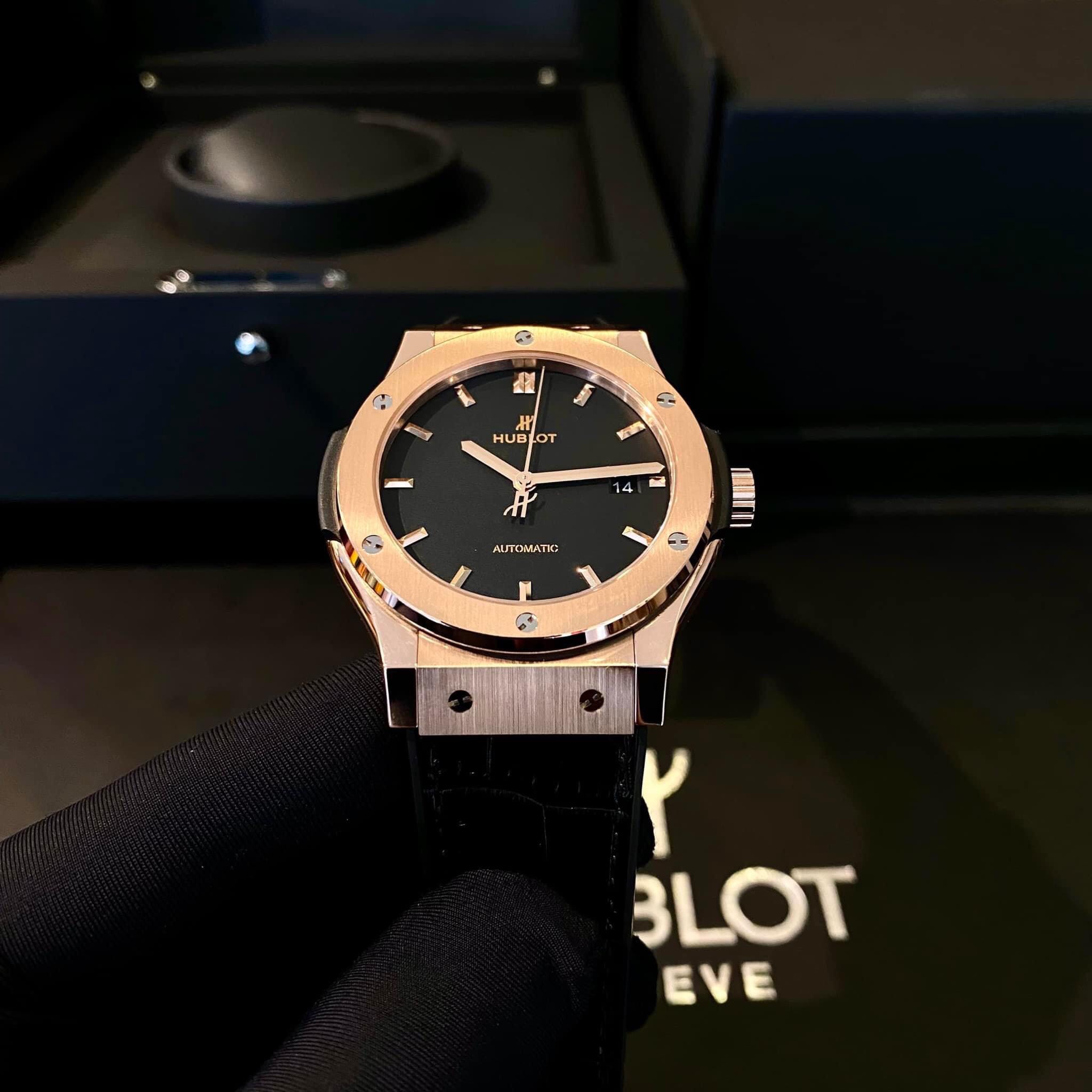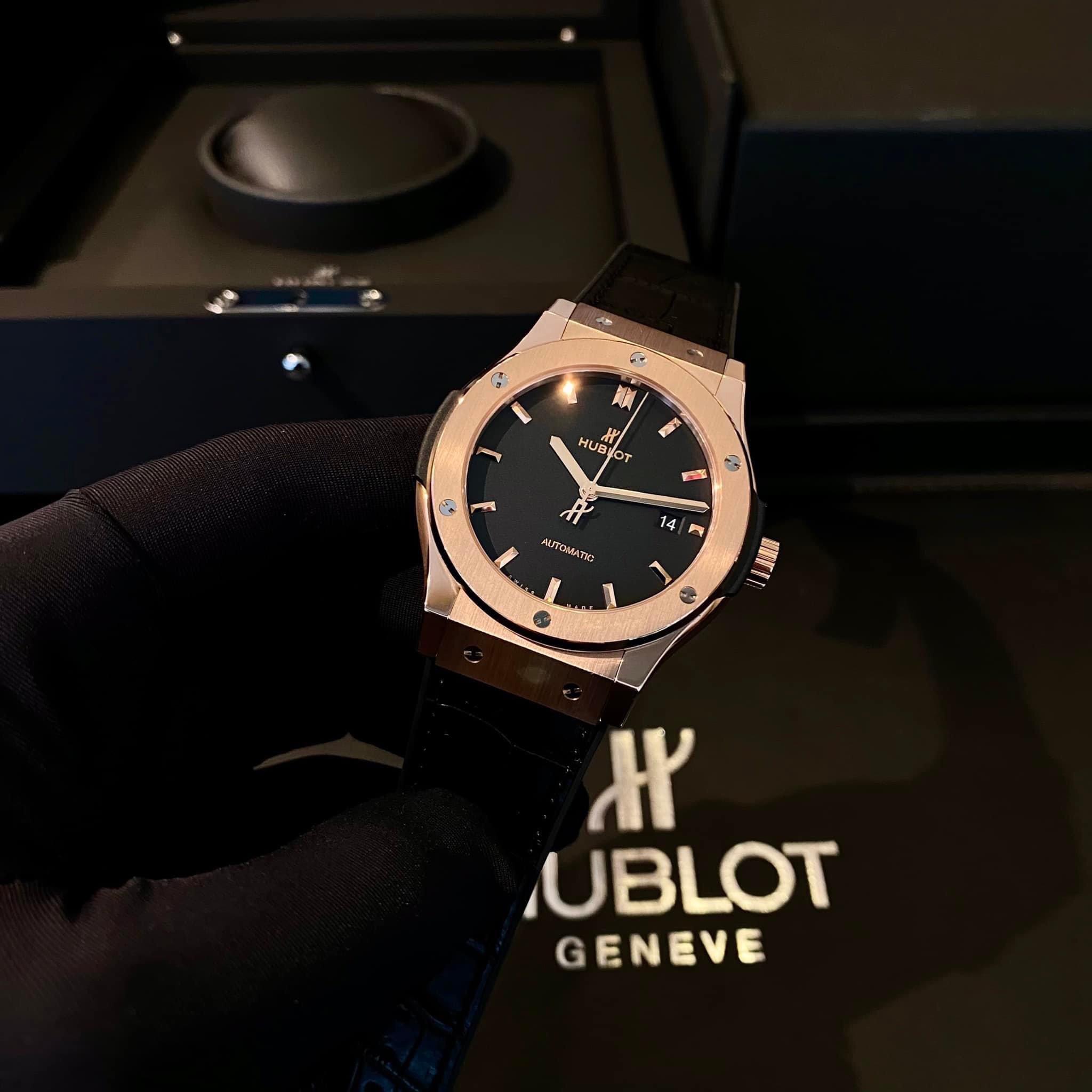 Bên cạnh vẻ đẹp bề ngoài, Hublot Kinggold Black 42mm cũng được trang bị những tính năng vượt trội. Đồng hồ sử dụng máy cơ tự động chính xác, đảm bảo bạn luôn biết chính xác giờ phút mỗi khi nhìn vào nó. Mặt số đen lịch lãm với các chỉ số và kim chỉ giờ được làm bằng vàng hồng, tạo nên sự tương phản tuyệt đẹp và dễ nhìn. Bên cạnh đó, Hublot cũng không quên tích hợp chức năng chống nước, giúp bạn tự tin sử dụng đồng hồ trong mọi hoạt động hàng ngày.