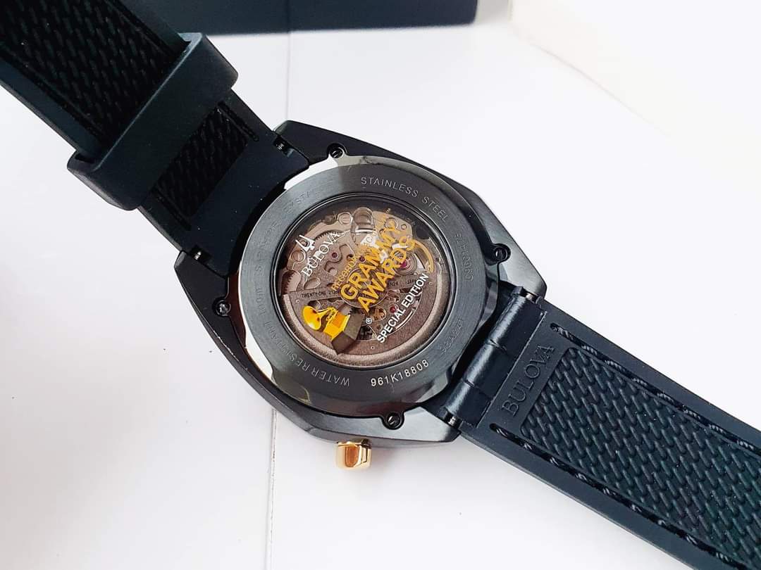 - Mặt số độc đáo với ô lộ cơ skeleton ở trung tâm, tạo nên một sự khác biệt đáng chú ý. Các góc biểu thị tổ hợp 12 hợp âm, tạo nên một sự tương phản đặc biệt. Núm vặn được khắc logo của giải Grammy, thể hiện sự tôn vinh và đẳng cấp của nghệ thuật âm nhạc.