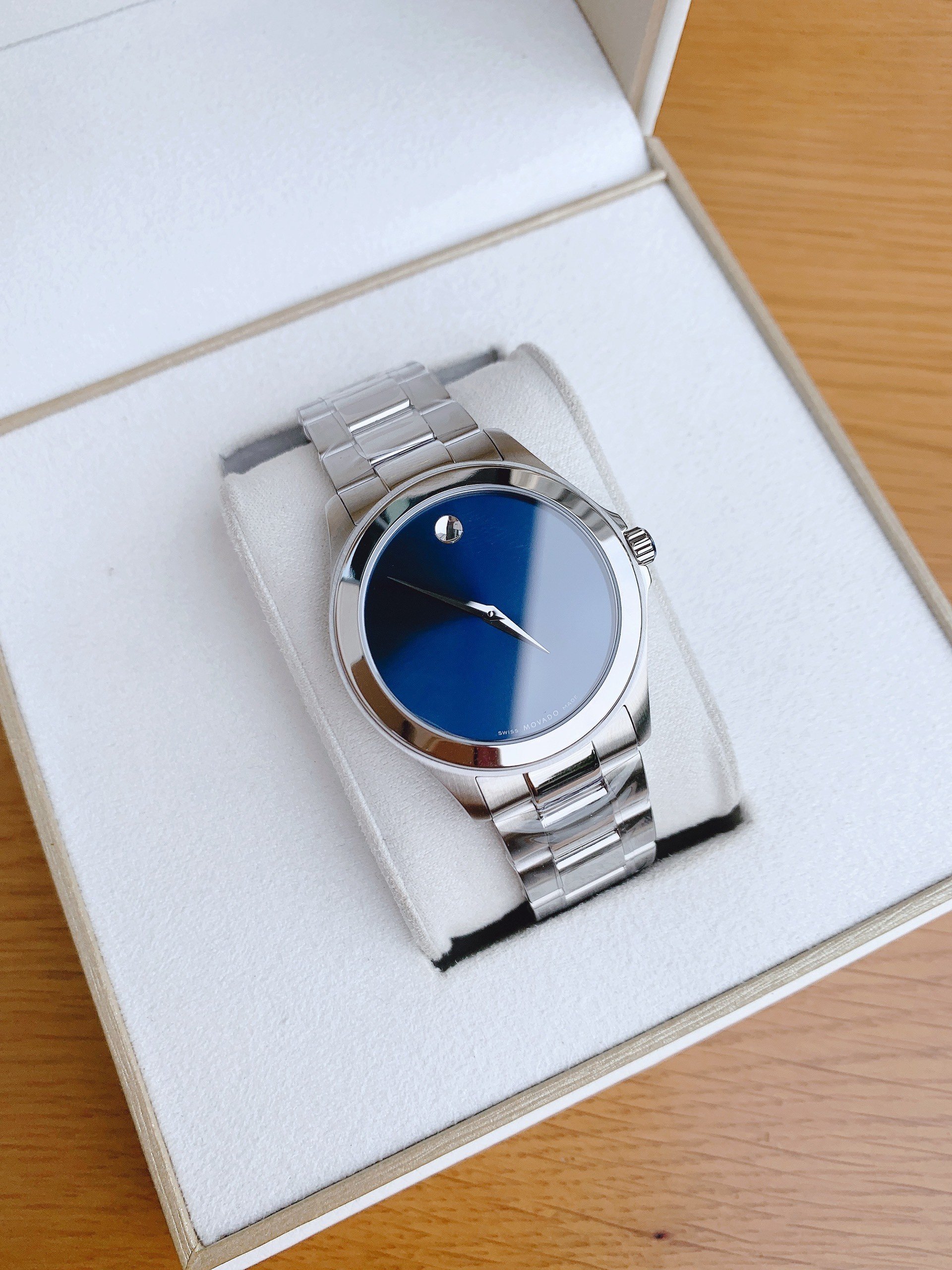 🌟 Thiết kế độc đáo: Một cách rất riêng biệt, Movado đã tạo nên đẳng cấp của mình bằng thiết kế đơn giản và sang trọng. Mặt xanh độc lạ tạo nên sự cuốn hút và cá tính đặc trưng của dòng Junior Sport. Sự "không cọc số" độc đáo đã định nên tên tuổi và phong cách riêng biệt cho Movado, giúp chiếc đồng hồ này trở thành biểu tượng không thể nhầm lẫn.