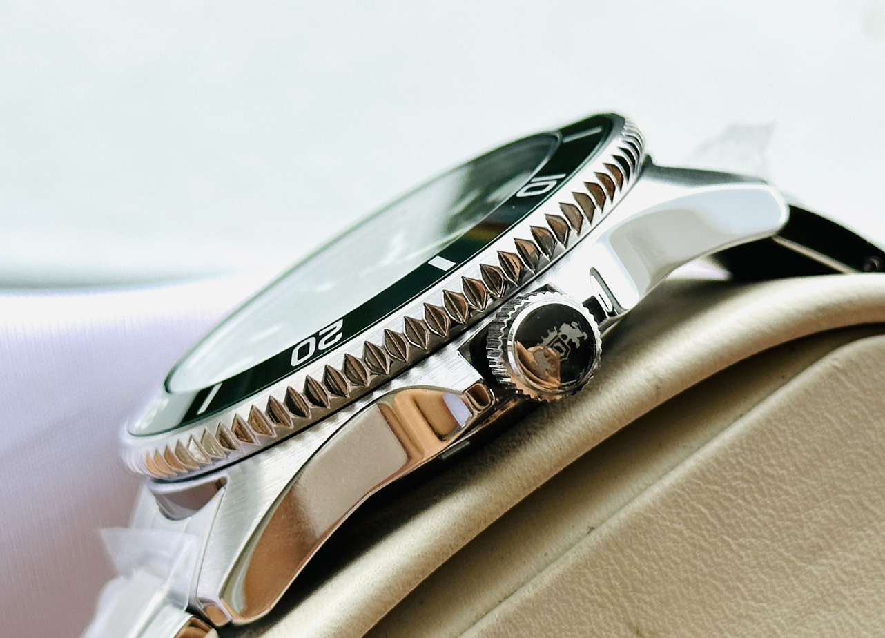 Được trang bị mặt số màu xanh ngọc lục bảo độc đáo và hiếm có, chiếc đồng hồ ORIENT MAKO XL KANNO RA-AA0914E19B mang đến sự thu hút đặc biệt với gam màu tươi mới và cuốn hút. Benzel xoay cực êm, cho phép bạn dễ dàng thay đổi thời gian theo ý muốn. Thiết kế dây kim loại chắc chắn giúp bạn cảm nhận sự thoải mái khi đeo trên cổ tay.