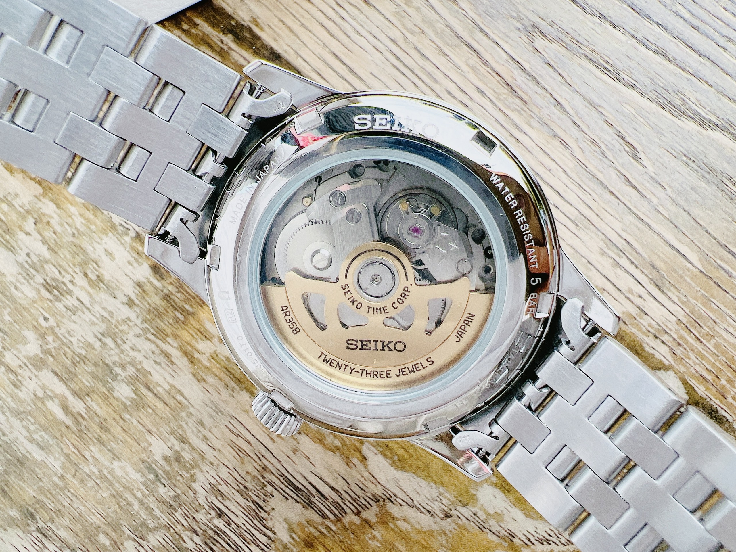 Với khả năng chống nước lên đến 5 bar, Seiko Presage Cocktail SRPG23J1 rất tiện dụng và đáng tin cậy trong mọi hoạt động hàng ngày.