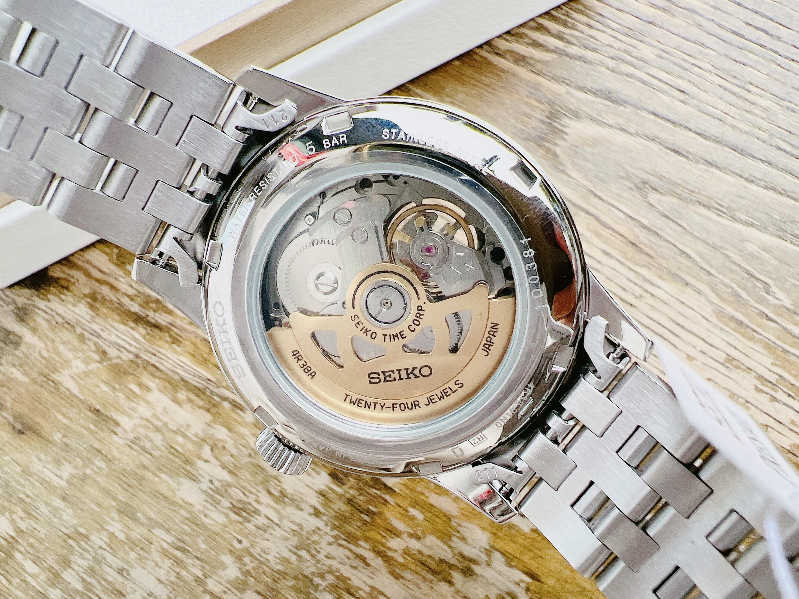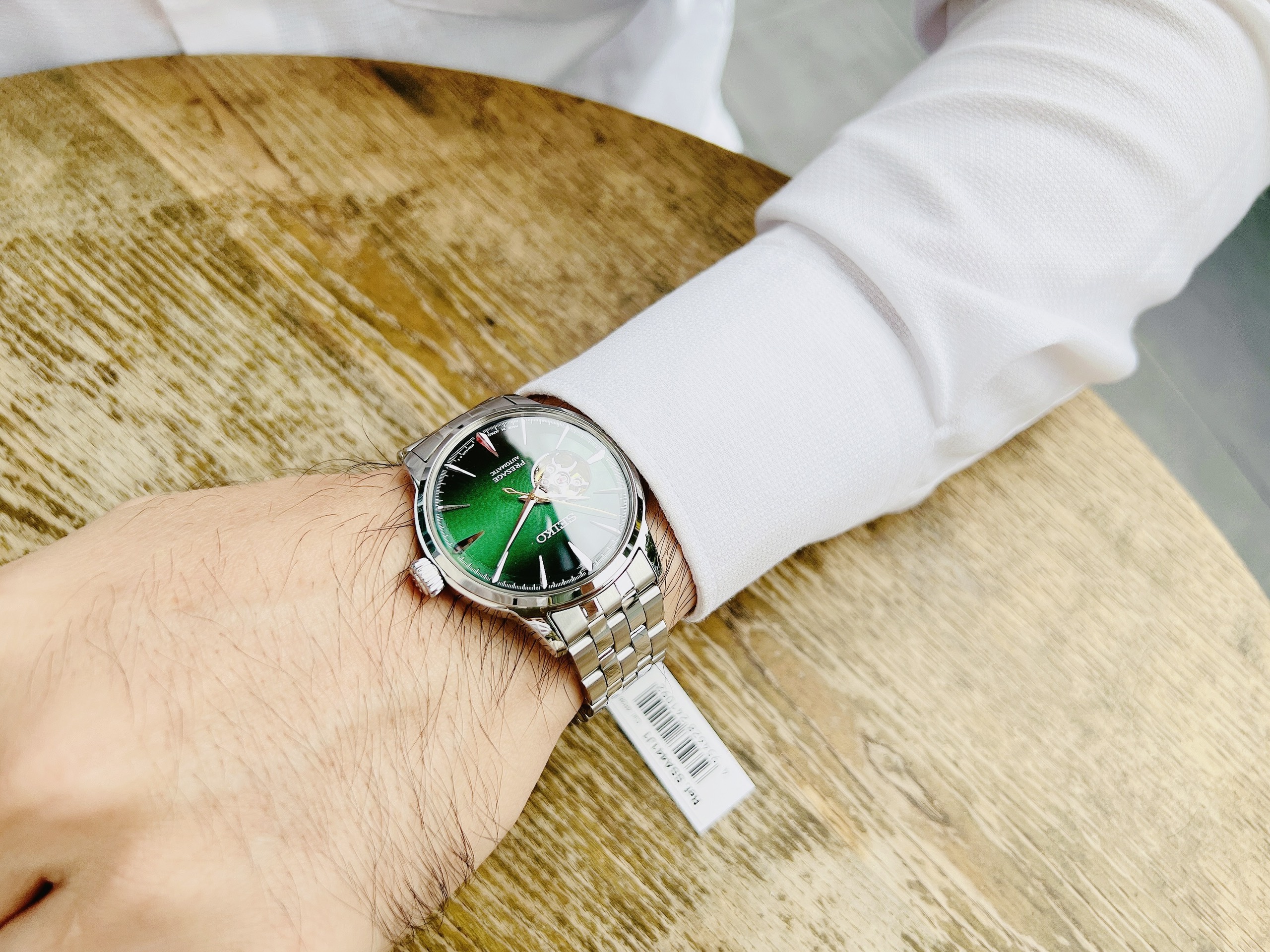 Kích thước 40.5mm của chiếc đồng hồ này vừa vặn và phù hợp với cổ tay nam. Caseback hở máy cho phép bạn chiêm ngưỡng vẻ đẹp và hoạt động của máy, tạo nên một trải nghiệm thú vị và thêm sự độc đáo cho chiếc đồng hồ.