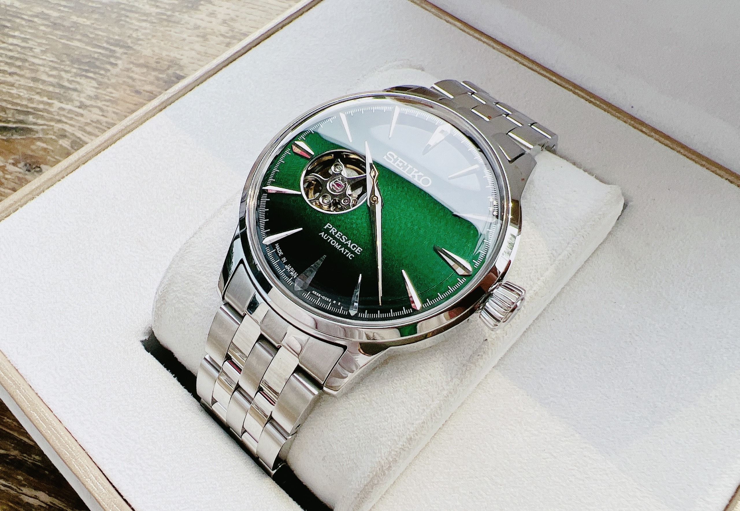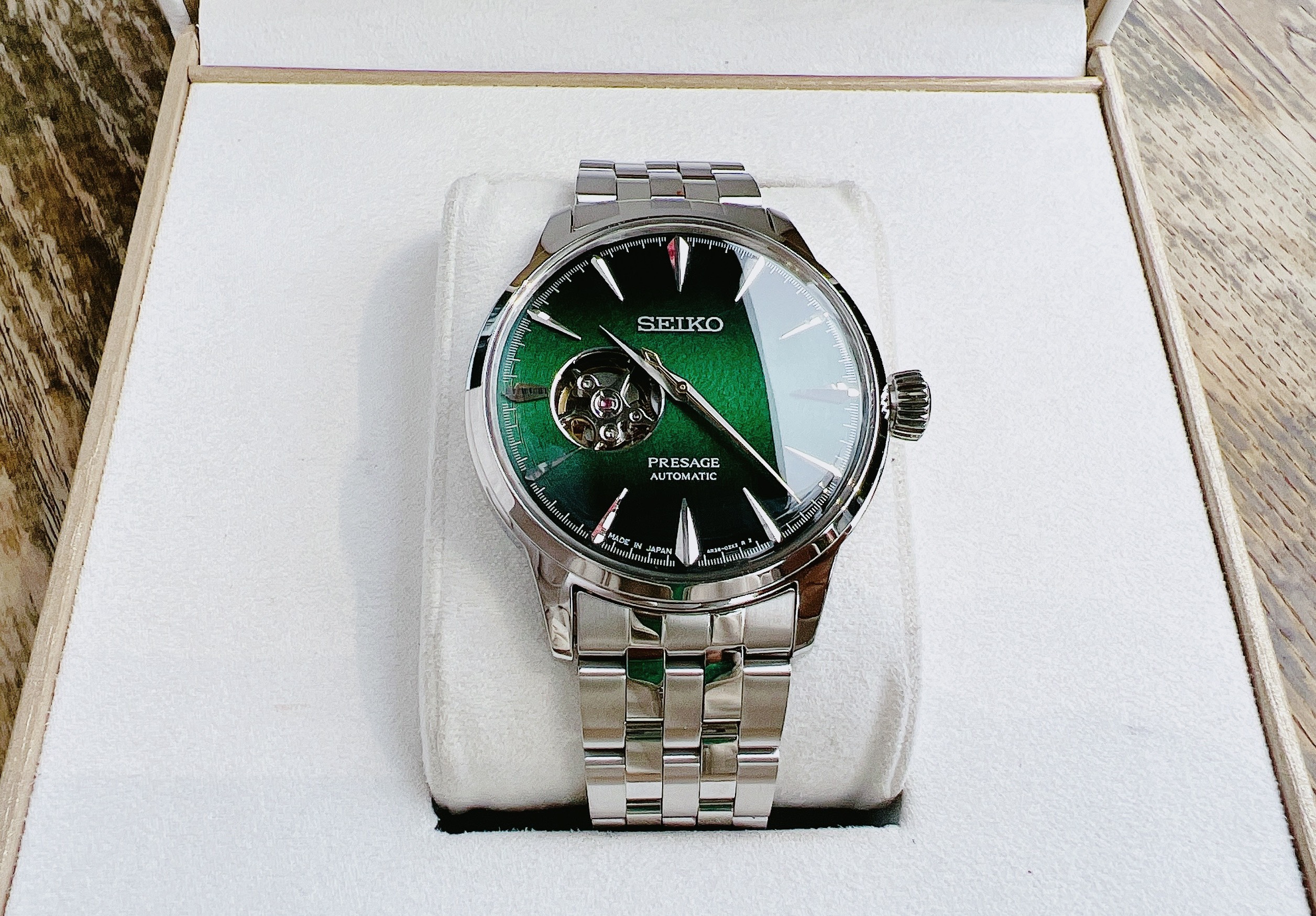 Seiko Presage Cocktail Time Grasshopper SSA441J1: Sự kết hợp độc đáo giữa cocktail và nghệ thuật, tạo nên một chiếc đồng hồ đẳng cấp. Made in Japan.