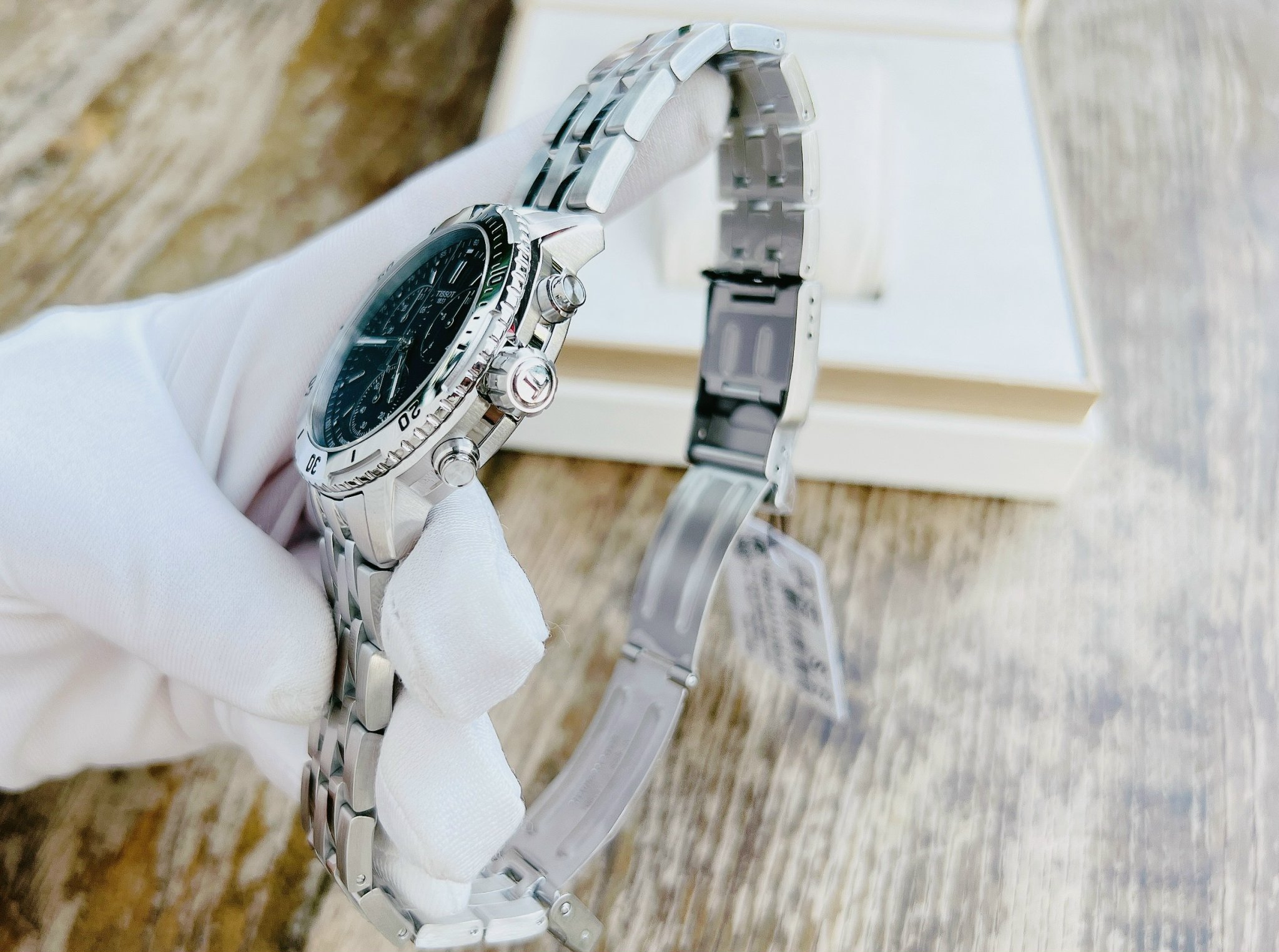 - Sử dụng loại máy Quartz Chronograph, đem lại sự chính xác và tính năng Chronograph tiện dụng.