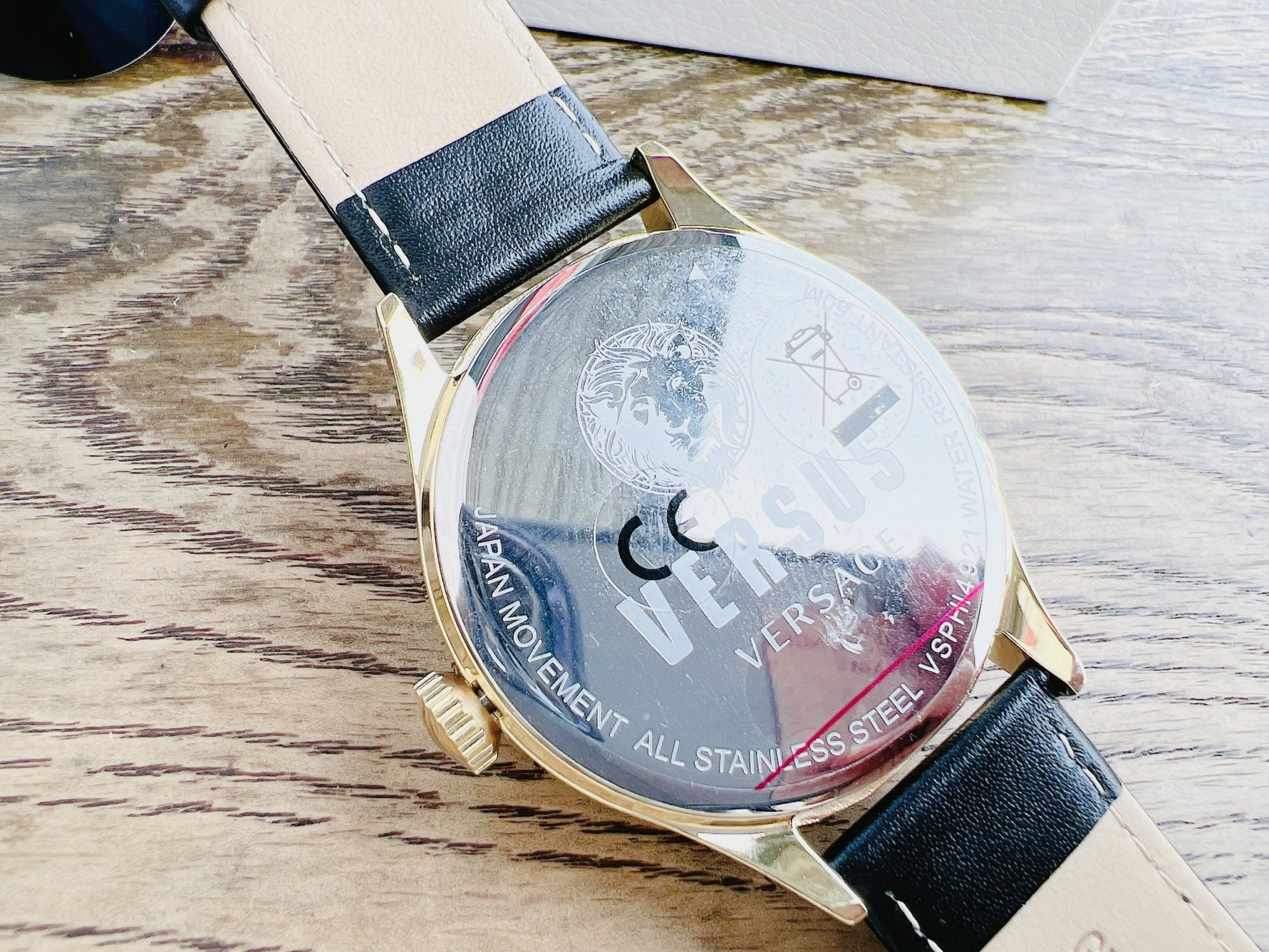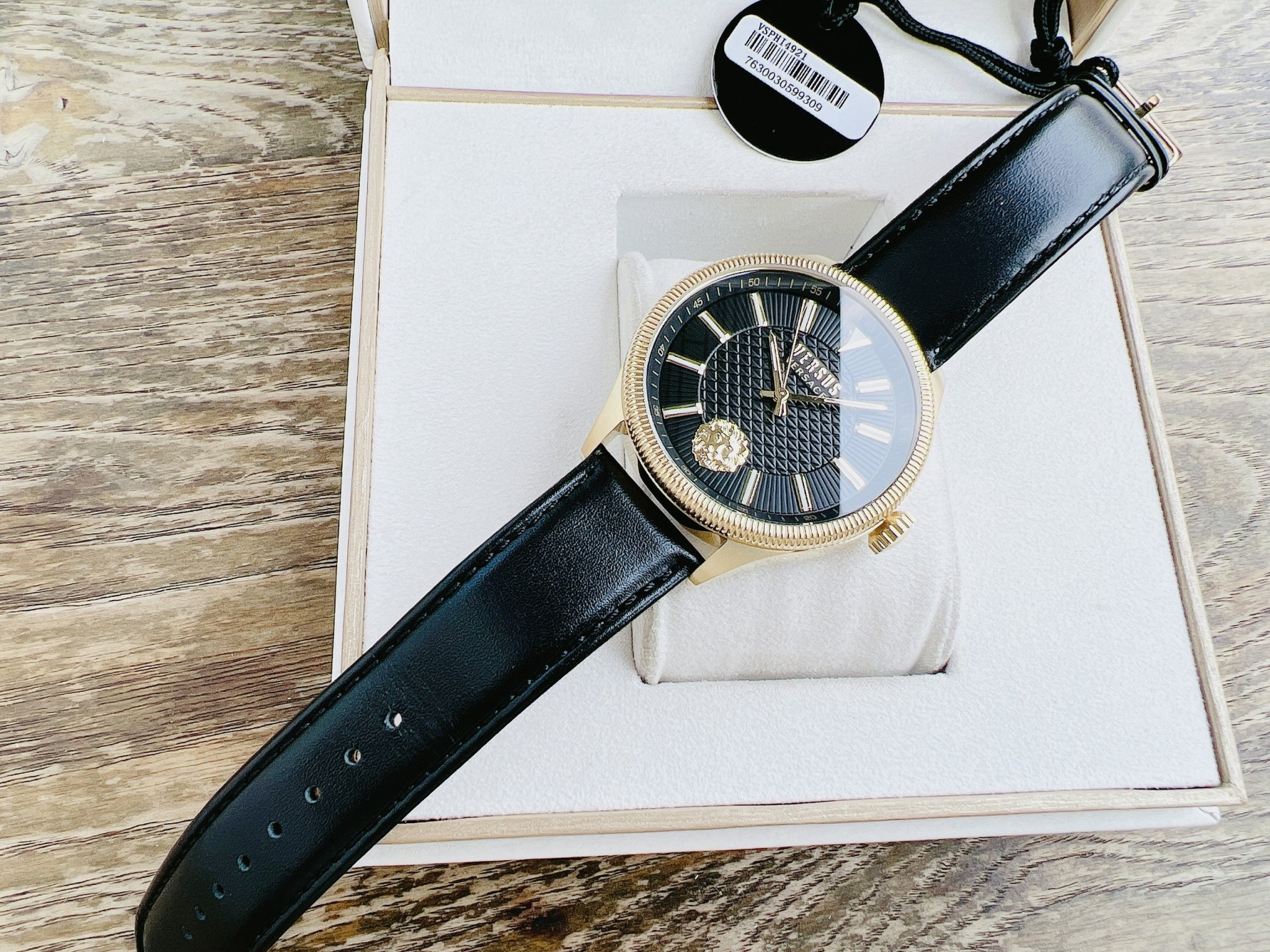 Dây da đen làm tăng thêm vẻ lịch lãm và tinh tế cho chiếc đồng hồ. Biểu tượng 3D Versus Lion Head tại vị trí 6 giờ là một điểm nhấn độc đáo, thể hiện sự cá nhân hóa và quyền lực.