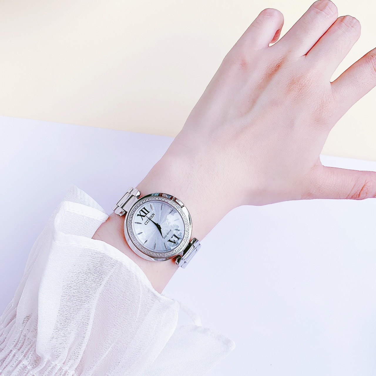 Đồng hồ nữ C.itizen Capella Diamond Silver Dial Ladies Watch EX1500-52A cũng có khả năng chống nước lên đến 50m, cho phép bạn sử dụng trong các hoạt động hàng ngày và trong môi trường ẩm ướt mà không cần lo lắng.